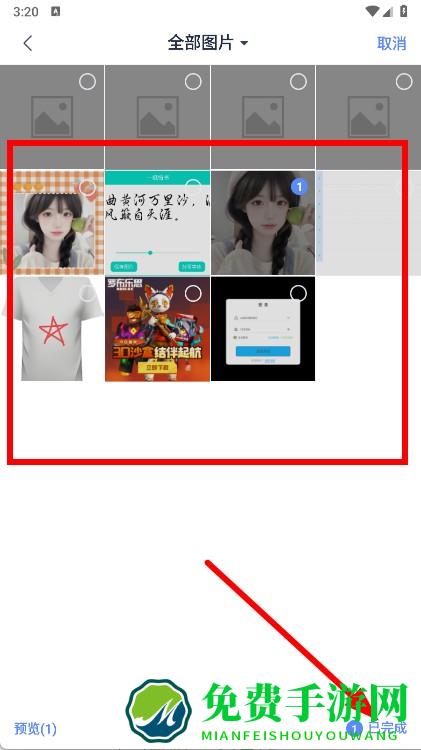 4、在图库中勾选目标图片后,点击已完成,完成图片插入。