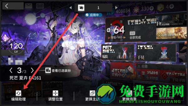 1、在进入到明日方舟主页中,可以点击箭头指向图标,进入主页编辑。