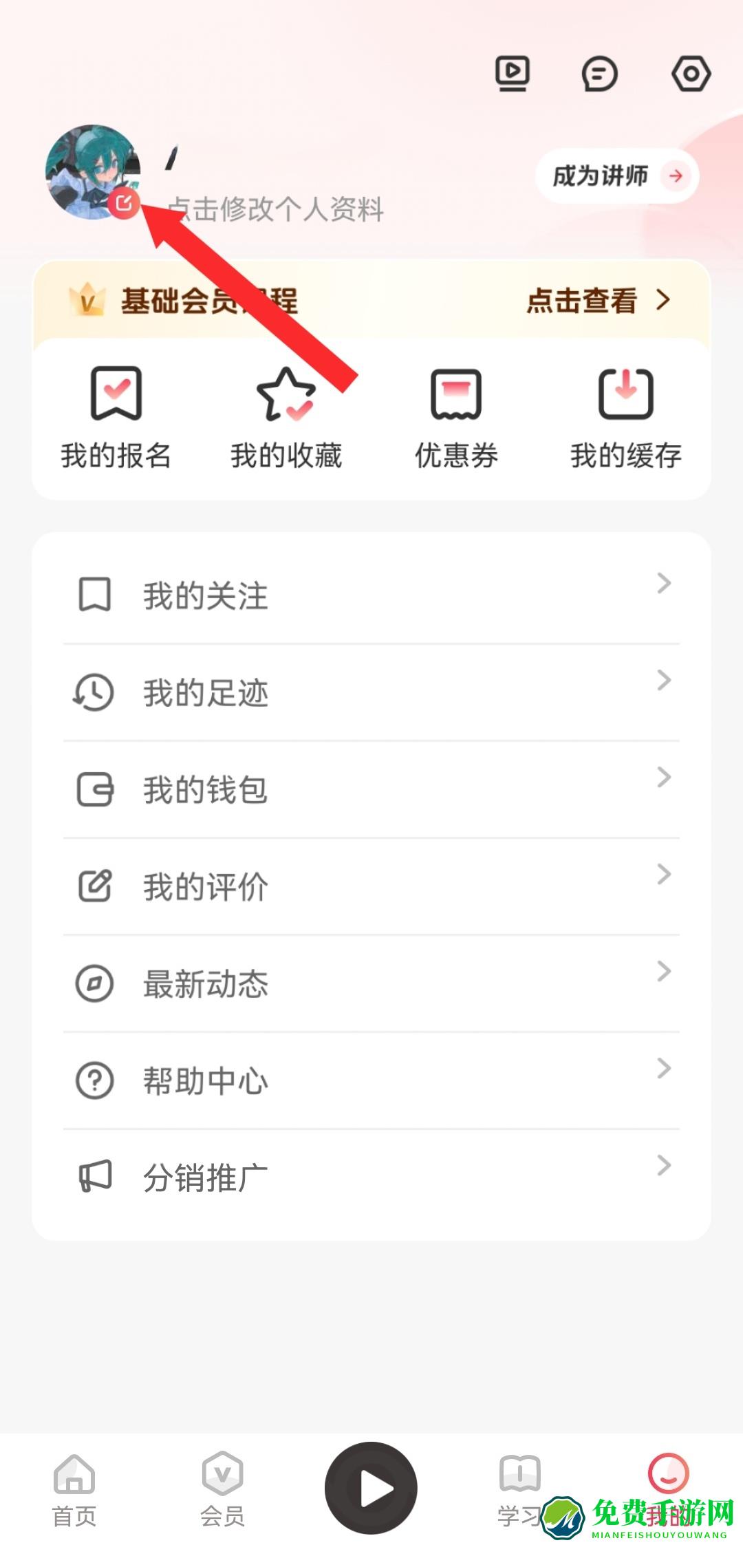 2、在个人页面,点击头像旁的编辑图标,进入编辑我的资料页面。