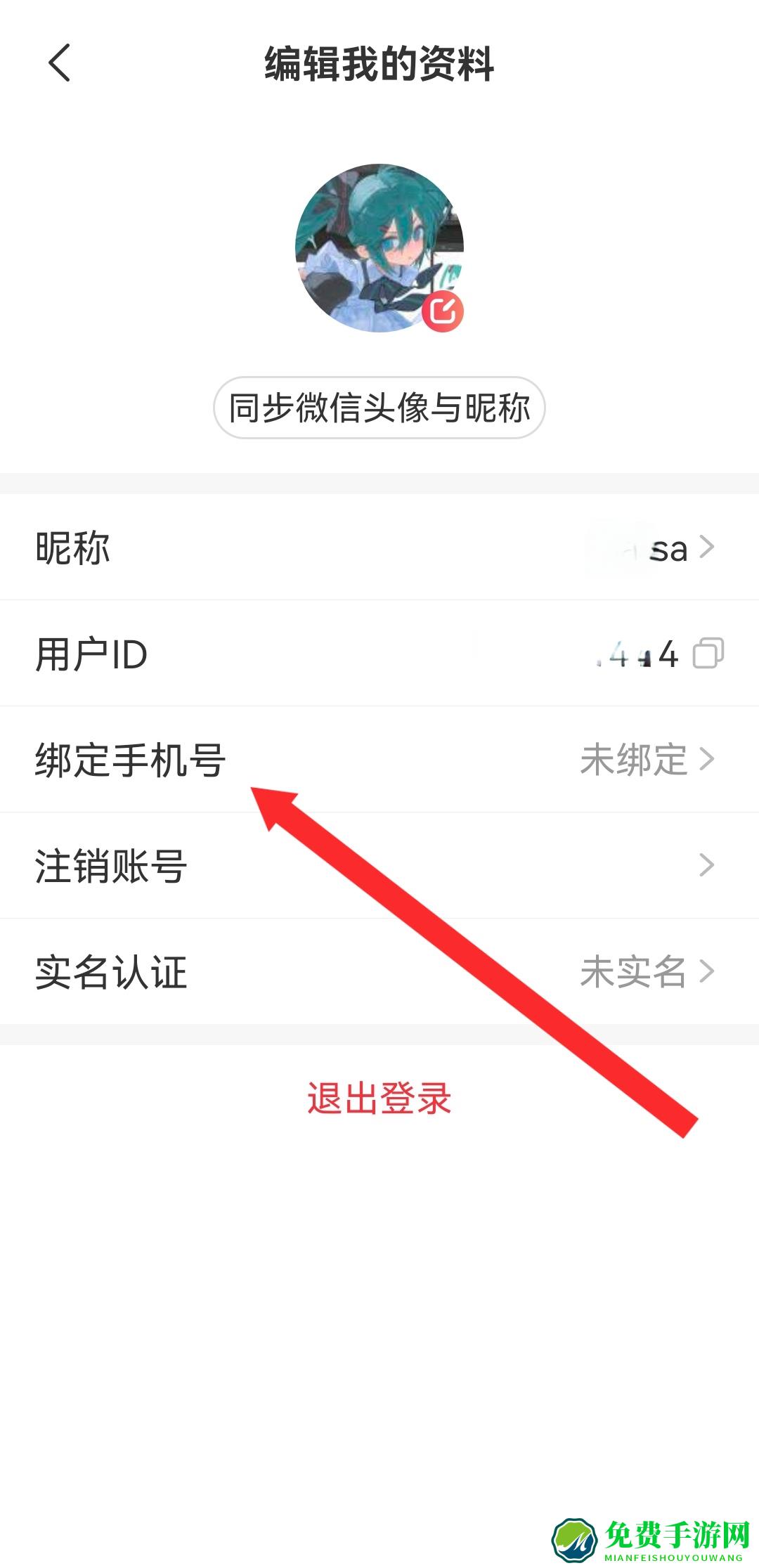 3、在编辑我的资料页面,点击绑定手机号,进入绑定手机号码页面。