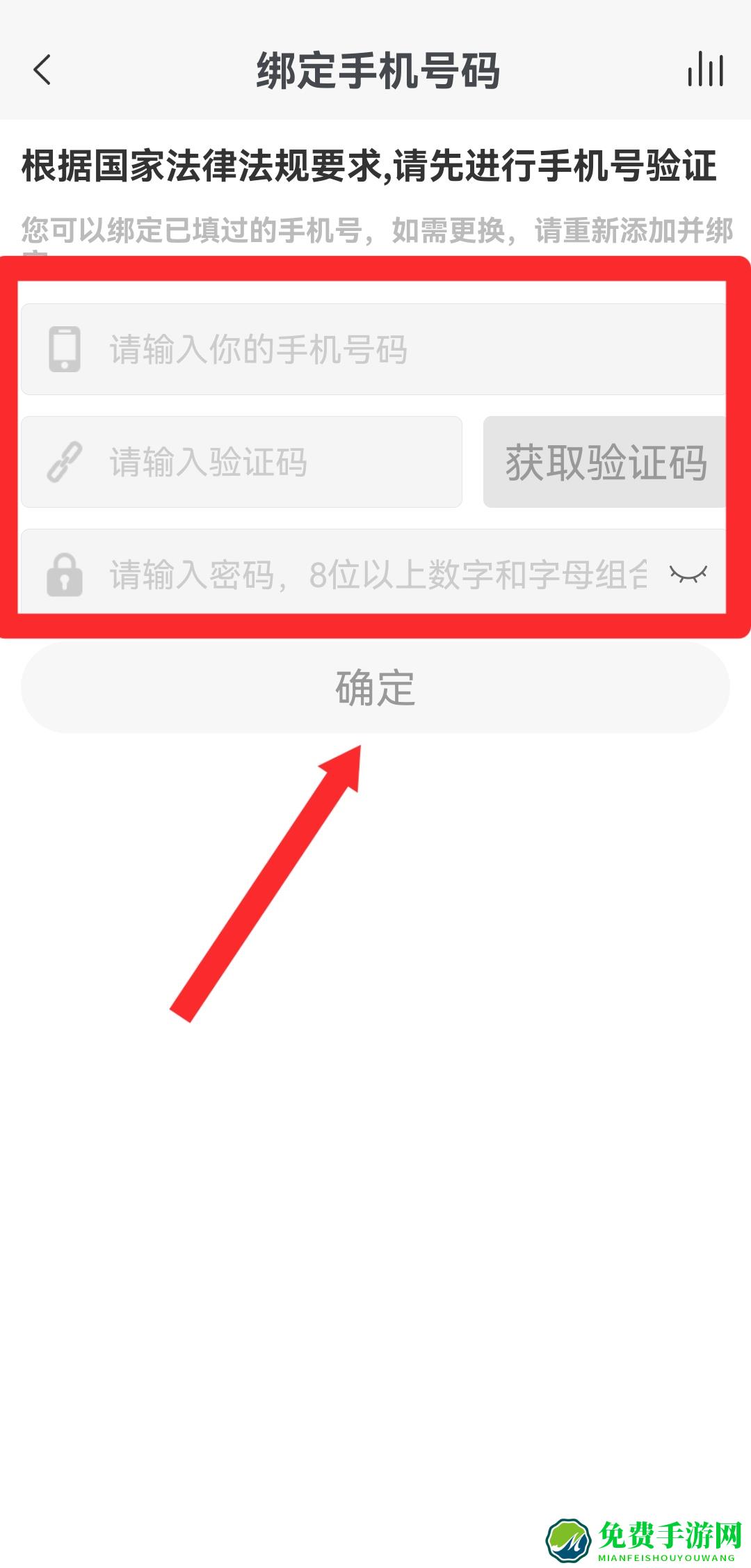 4、在页面输入手机号、验证码和密码后点击确定,完成号码绑定。