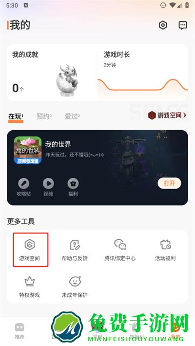 3、接着我们将会在我的这里-更多工具这里找到游戏空间,下载的游戏都会在这里找到;