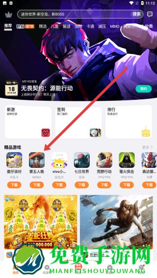 2、进入vivo游戏中心的精品游戏板块,浏览推荐游戏列表,找到目标游戏第五人格,查看其展示信息。
