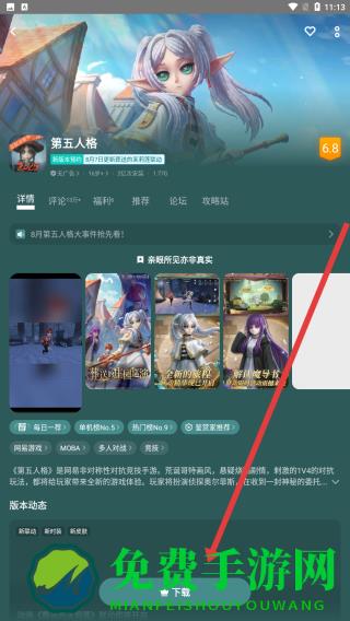 3、进入第五人格的游戏详情页面,了解游戏背景等内容后,点击底部绿色下载按钮,开始安装游戏。
