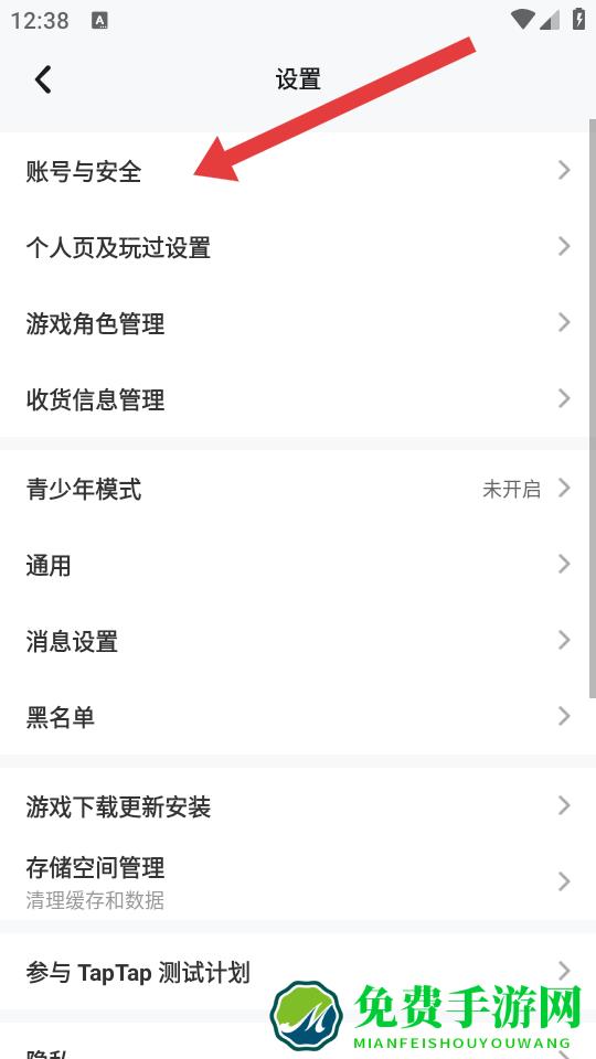 1、进入TapTap设置页面后,点击账号与安全的选项,进入账号安全设置界面。