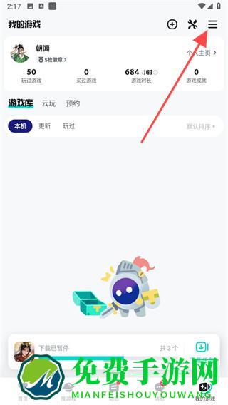 2、在我的游戏栏目中继续点击右上角进入设置界面