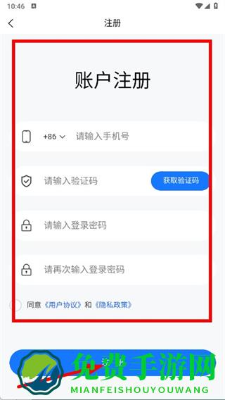 4、在注册页面,依次输入手机号等信息,勾选同意后,点击注册完成操作。