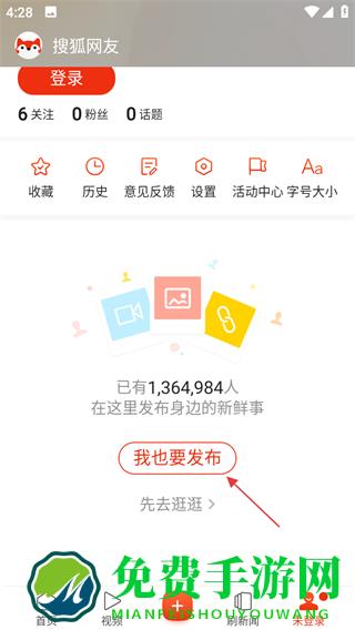 1、打开搜狐新闻,点击页面底部的未登录,进入个人页面。