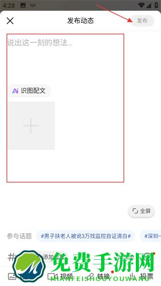 3、在发布动态页面输入想法等内容后,点击发布即可发布文章。