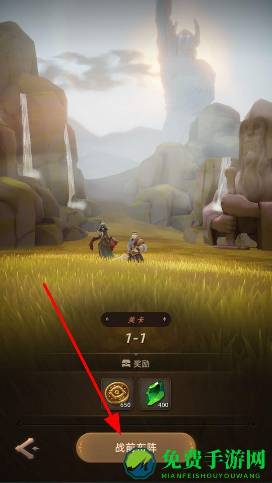 1、点击战前布阵,对参战的英雄等进行排布,为即将到来的战斗做好准备,合理的布阵能提升战斗优势。