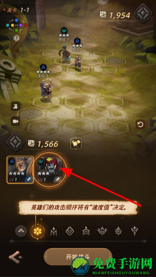 2、接着进入战斗,选择英雄放置参与战斗,英雄们的攻击顺序由速度值决定,利用好英雄的速度特性,展开战斗。