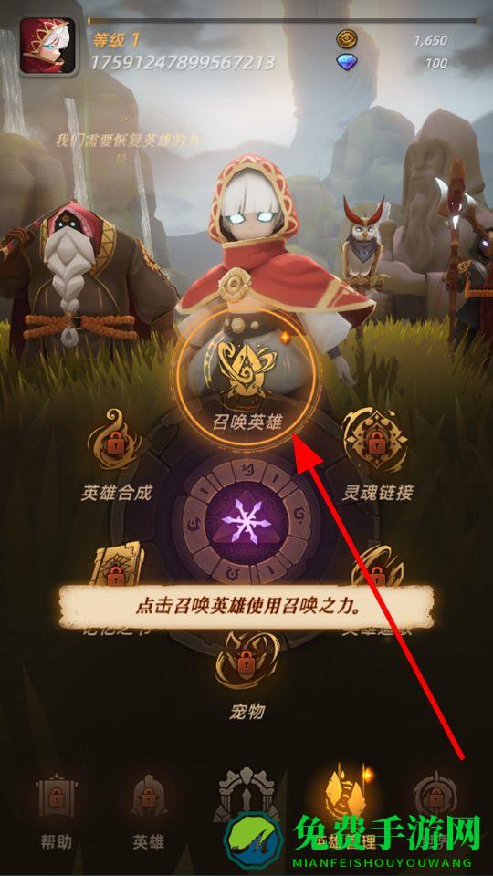 4、进行召唤英雄操作,使用召唤之力召唤英雄,扩充自身的英雄阵容,为后续战斗提供更多战力选择。