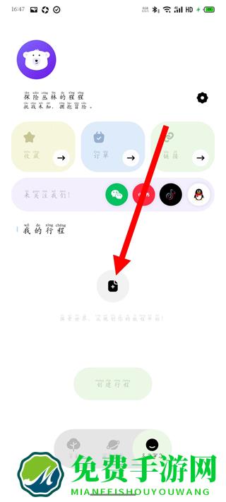 2、在个人页面,点击创建行程的图标,进入创建新行程页面。