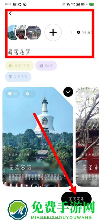 4、在精选地点展示页,点击生成线路,获取规划的旅行线路。