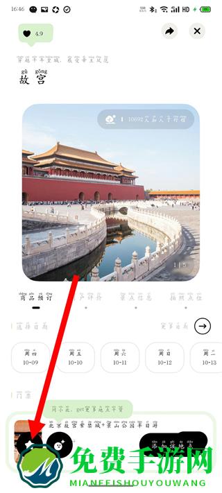 4、进入景点详情页后,点击左下角星形图标收藏该景点。