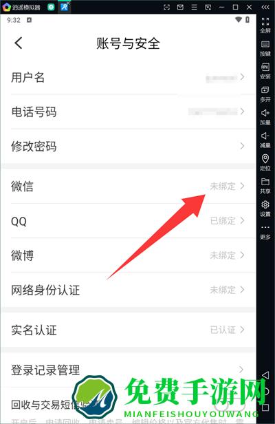 4、在账号与安全功能界面中找到微信选项,点击后方的未绑定,之后跳转到微信app中,用户跟随指引完成绑定即可。
