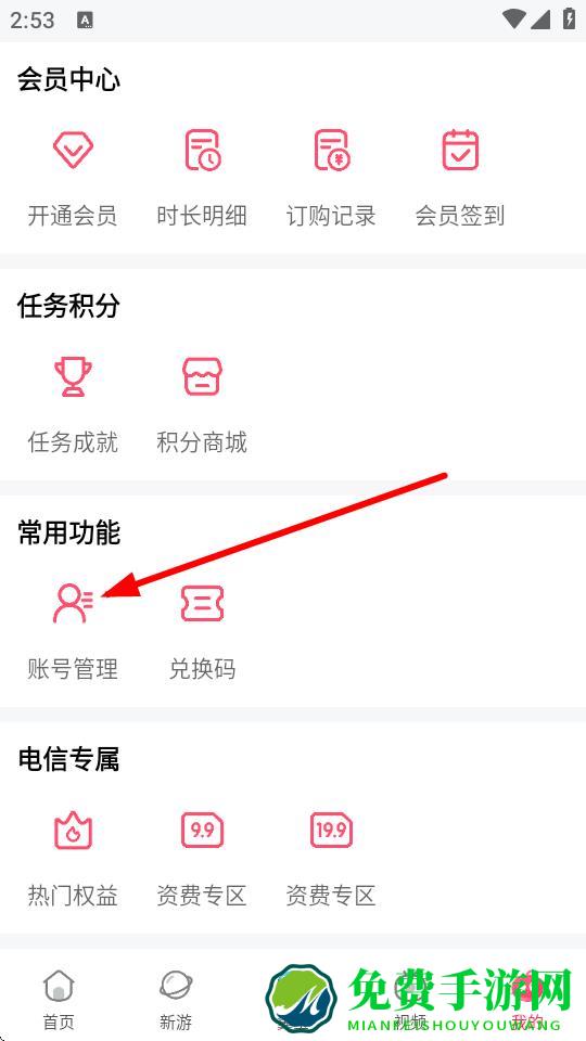 1、打开天翼云游戏应用,点击底部导航栏中的我的选项。