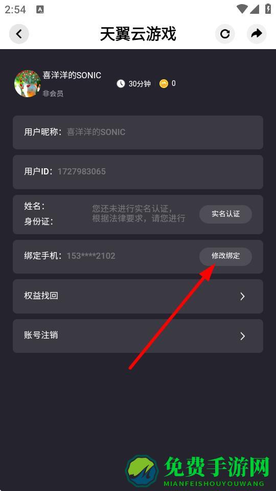3、进入账号管理页面后,在绑定手机信息栏右侧,点击修改绑定按钮。