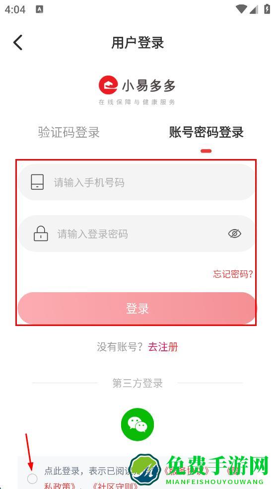 4、在用户登录界面,勾选点此登录表示已阅读并同意相关协议,再进行后续登录操作。