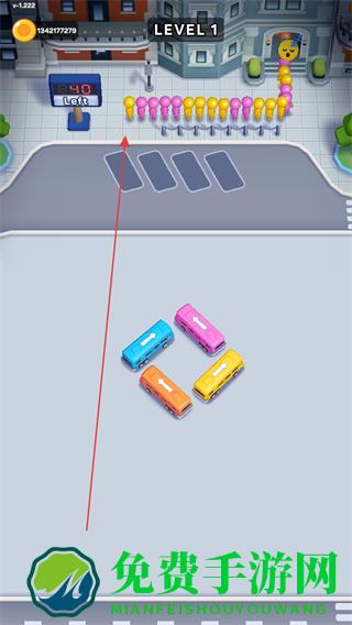 4、将巴士停到对应颜色乘客队伍前,完成关卡任务,进入下一关挑战。