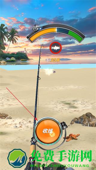 3、收线过程中,留意上方的进度条和鱼的图标,调整收线节奏,避免鱼逃脱。