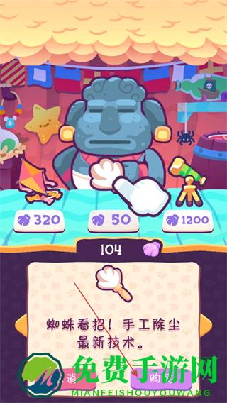 3、在商店中,选择心仪的物品,比如手工除尘,点击购买按钮,消耗贝壳进行购买。