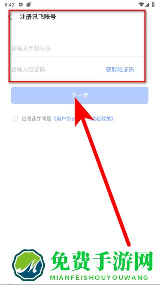4、输入手机号码,点击获取验证码,接着输入收到的验证码,点击下一步。