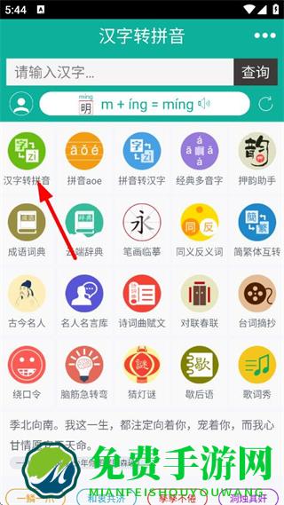2、在软件主界面,点击汉字转拼音,进入汉字转拼音功能页面。