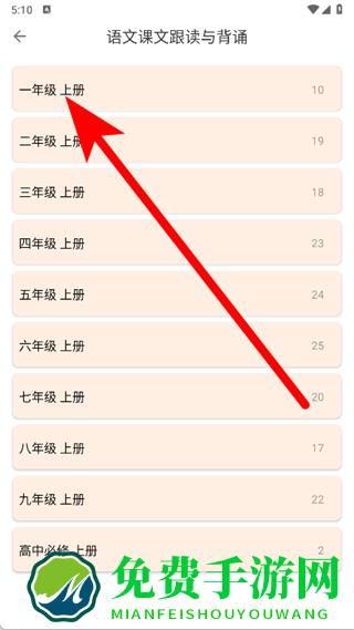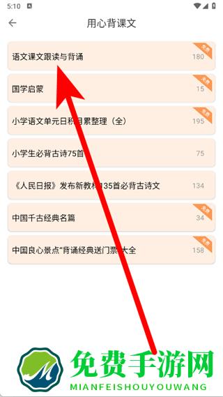 2、在用心背课文页面,选择语文课文跟读与背诵。