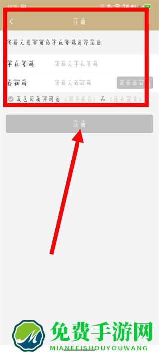 4、输入常用手机号码、验证码,勾选同意后,点击注册,完成注册。