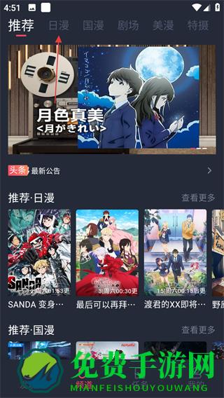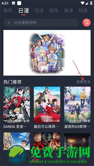 2、在日漫分类页面,点击热门推荐旁的查看更多,进入全部视频页面。