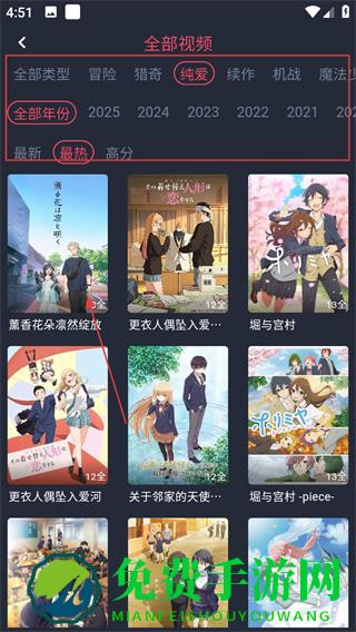 3、在全部视频页面,筛选条件后点击想看的日漫,进入播放页面。