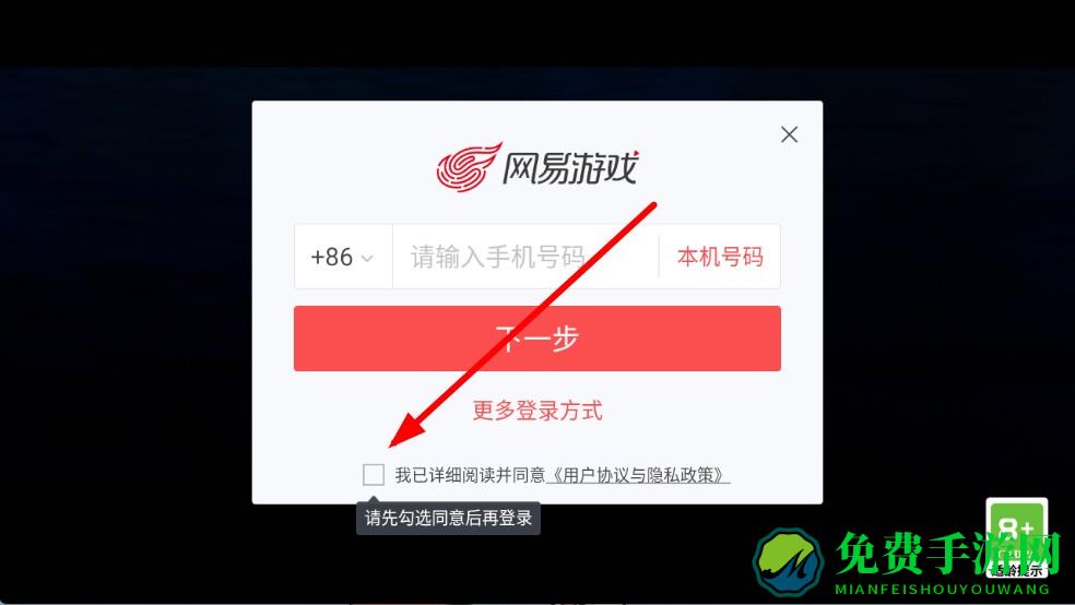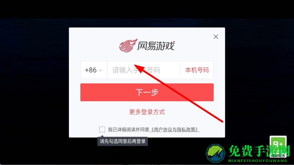 1、在网易游戏登录弹窗中,点击标有请输入手机号码的输入框,准备录入用于登录的手机号码。