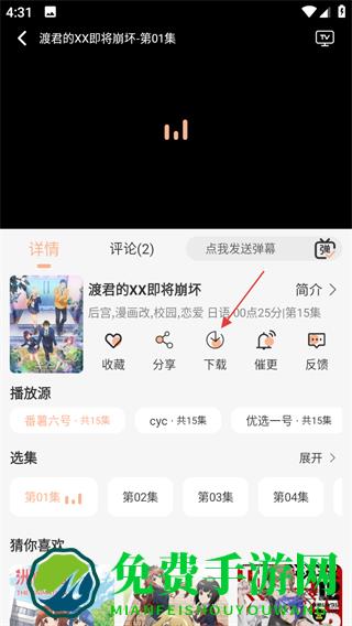 2、在渡君的XX即将崩坏播放页面,点击下载,进入下载选择页面。