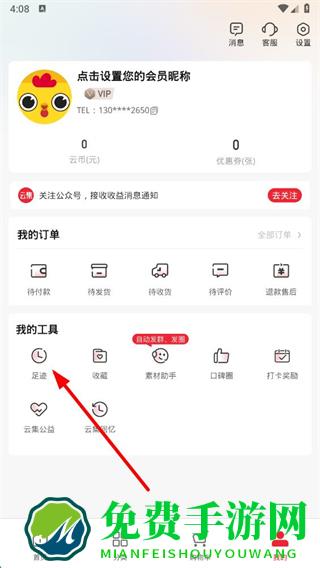 2、在我的页面,找到并点击足迹选项,进入浏览记录页面。