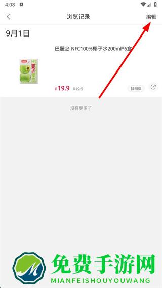 3、在浏览记录页面,点击右上角的编辑按钮。