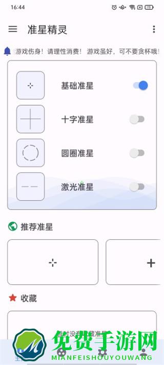 2、进入首页,基础准星、十字准星、圆圈准星、激光准星