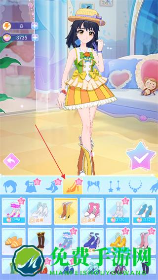 4、完成服装、鞋子、饰品等搭配后,点击右侧的√图标,确认当前的换装效果。