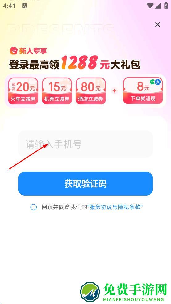 3、勾选“阅读并同意我们的‘服务协议与隐私条款’”,然后点击“获取验证码”按钮。