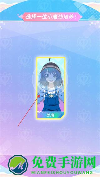1、进入游戏,看到选择一位小魔仙培养!提示,点击选择小魔仙角色如美琪。