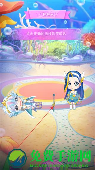 2、进入关卡如1-1救救王子,根据提示点击正确的法杖治疗海达,点击对应的法杖道具。