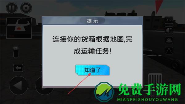 1、看到连接你的货箱根据地图,完成运输任务!提示,点击知道了确认。