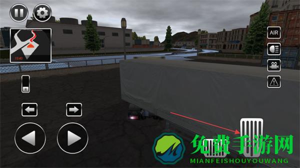 4、根据左侧小地图的路线指引,操控方向按钮,驾驶卡车完成运输任务。
