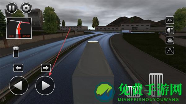 3、连接好货箱后,点击屏幕右侧的油门按钮,启动卡车开始行驶。