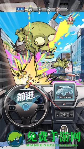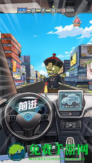 2、行驶过程中,留意前方出现的僵尸如清朝官服僵尸,准备应对。