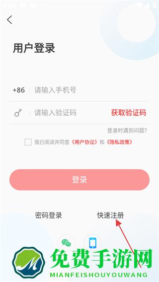 3、在用户登录页面,若没有账号,点击快速注册,进入用户注册页面。
