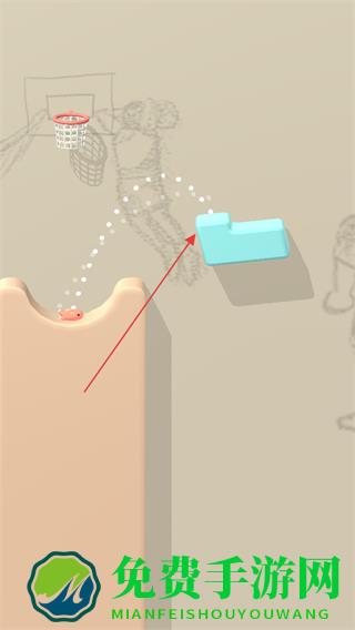 3、从篮球框弹出后,引导小鱼儿落在蓝色平台上,确保落点准确。
