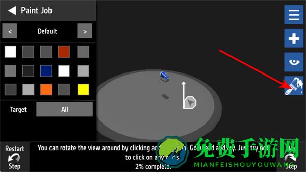 2、涂装操作,点击涂装工具按钮,进入涂装界面,选择颜色对机械部件进行涂装,改变其外观。
