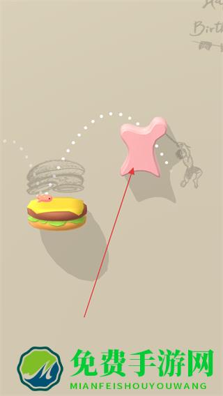 1、操控小鱼儿从汉堡处出发,朝着粉色物体方向移动。