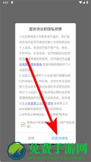 1、打开掌上长沙,在弹窗中点击同意并继续。